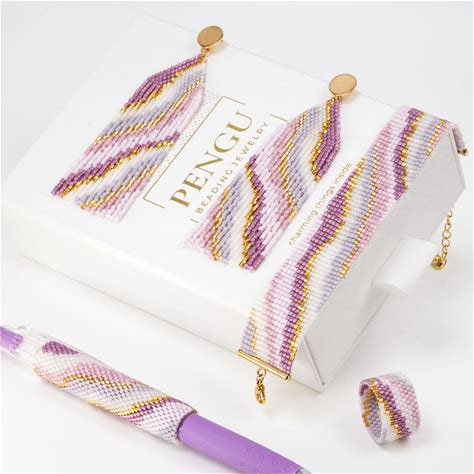 Beaded PAULA Collection- Miyuki Beading PDF Patterns: Loom Bracelet, Fringe Earrings, Pen Wrap, Ring