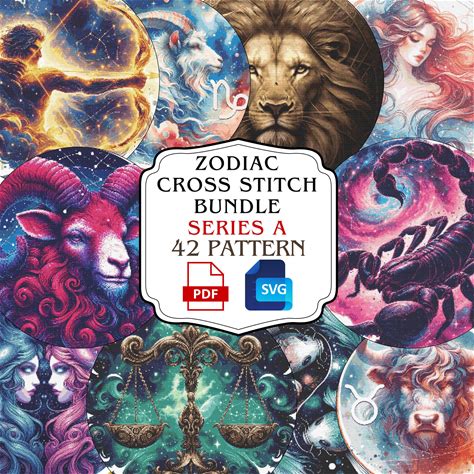 Zodiac Cross Stitch Pattern Bundle: Science Embroidery Set (PDF, SVG) Series A
