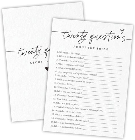 Nuckxy Bridal Shower Game Cards - Twenty Questions About The Bride - 30 Pcs Minimalism Wedding Game Cards, Engagement Party Game, Modern Bridal Shower