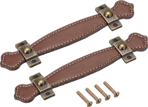 Uxcell Leather Handle, 6.3" 2Pcs Surface Leather Furniture Handles, Door Handle Strap Suitcase Dresser Drawer Knobs Pulls Replacement, Brown