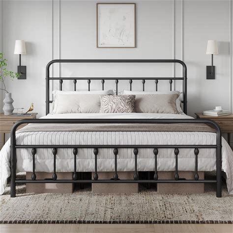 Yaheetech Classic Metal Platform Bed Frame Mattress Foundation With Victorian Style Iron-Art Headboard/Footboard/Under Bed Storage/No Box Spring