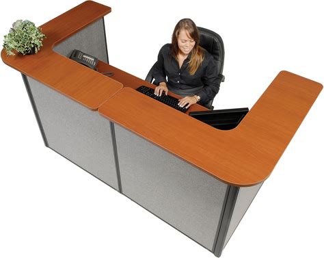 Office Source Cosmo Large Contemporary Curved Side Reception Desk With Floating Glass Transaction Counter