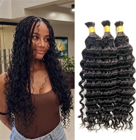 TIJRLGVBN Bulk Human Hair Deep Curly 3 Bundles (300G) - Boho Knotless & Box Braids 16 Inch Natural Black