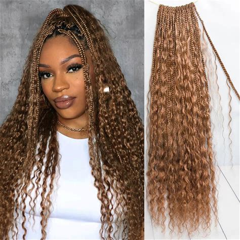 Goddess Box Braids Crochet Hair With Curly Ends 18 Inch Bohomian Box Braids Crochet Braids 8 Packs 3X Crochet Braids Synthetic Braiding Hair Extension