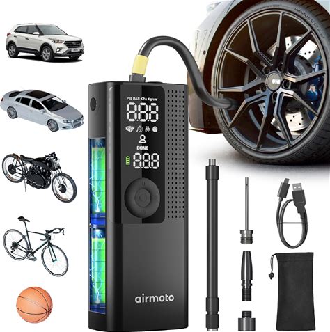 Airmoto Tire Inflator Portable Air Compressor - Air Pump For Car Tires With Digital Pressure Gauge, LED Light And Auto Shut-Off Function - Cordless