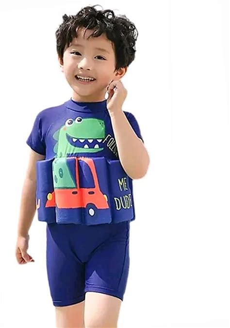Kids Detachable Buoyancy Swimsuit Adjustable Float Suit Front Zipper Slim Fit Short Sleeve One Piece