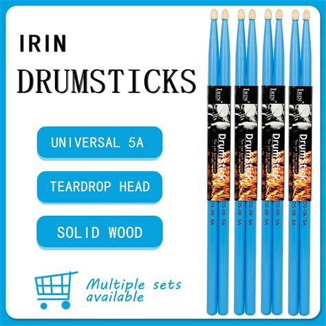 IRIN Drumstick Jazz Drum 5A Solid Wood Pair Drum Sticks Percussion Instrument Sturdy Maple Blue Drum