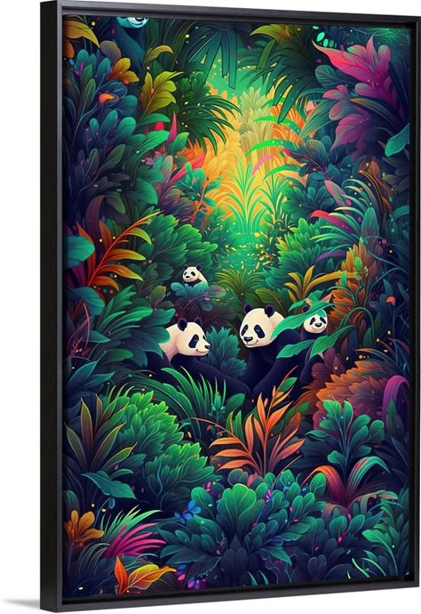 Hide And Seek Panda | Large Stretched Canvas, Black Floating Frame Wall Art Print | Great Big Canvas