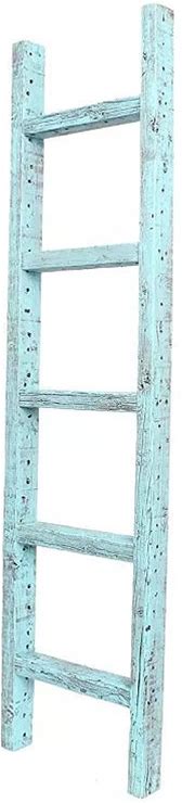 Rustic Farmhouse 5ft Reclaimed Wood Decorative Bookcase Picket Ladder (18 in. Wide), Robins Egg Blue