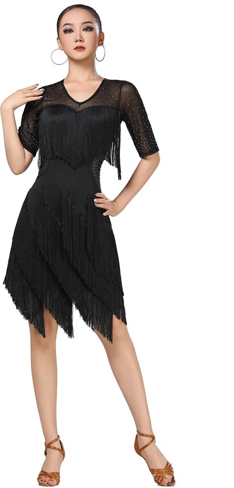 Z&X Women's Salsa Latin Dance Dress Glitter Sequin Fringe Flapper Party Dress Ballroom Dance Outfits