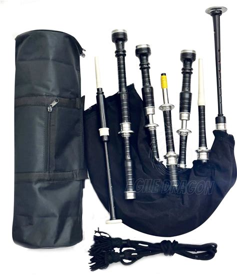 Professional Great Highland Bagpipes Silver Mounts Black Velvet Cover Set & Bag