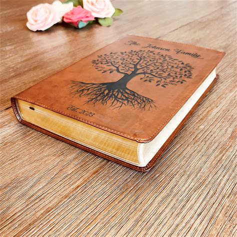 PERSONALIZED Family Tree Journaling Bible - ESV | Large Print | Brown Cover | Wedding Guestbook Idea