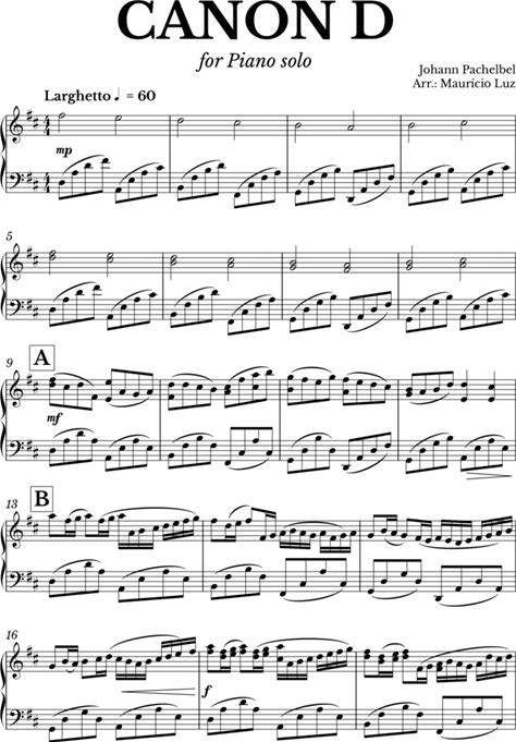 Sheet Music - Canon in D On Piano