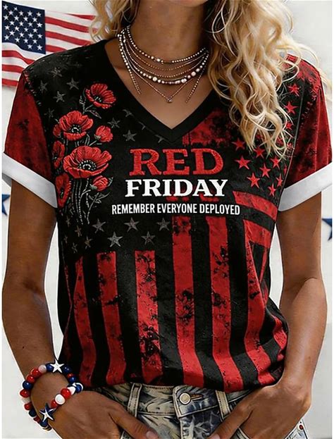 Women's Red Friday T Shirt Graphic Letter Stylish Classic Casual Short Sleeve V Neck Regular Tops Daily Going Out Weekend Black And Red