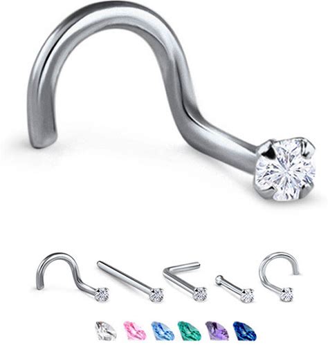 14K, 18K, 24K, Solid White Gold, Rose Gold Or Yellow Gold Nose Ring Screw Stud Bone Or L Bend. 2Mm, 3mm Bermuda Blue 22G 20G 18G