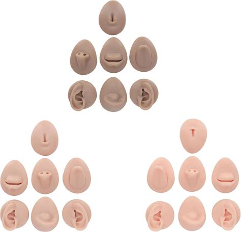 Focket 7PCS Piercing Practice Model, Silicone Ear Model Flexible Model Body Parts Tongue Model Model Mouth Model Nose Model Navel Model For Jewelry