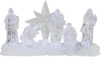 Northlight 11" Led Lighted Nativity Scene In Stable Acrylic Lighted Nativity Set | One Size | Decorative Objects Nativity Sets | Lighted