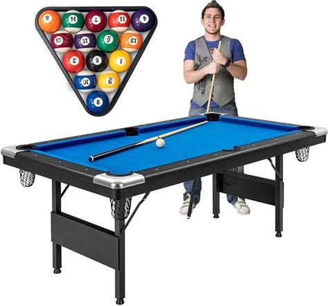 6 ft Portable Pool Table, Adults Folding Billiards Tables For Game Room With Easy Foldable Storage, Includes Full Set Of Billiard Balls, Cues, Chalk Brush(Blue/Pool Table)