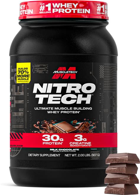 Muscletech Whey Protein Powder (Milk Chocolate, 2 Pound) - Nitro-Tech Ultimate Muscle Building Formula With Whey Protein Isolate - 30G Of Protein, 3G