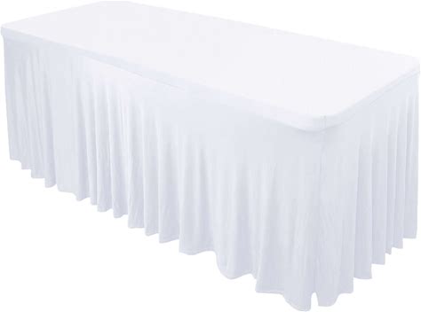 Wavy Spandex Table Skirt 72"X30" White By TCF Linen - Wholesale Event Supplies By Tableclothsfactory