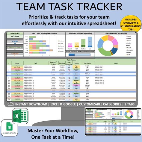 Team Task Tracker Spreadsheet, Google & Excel To-Do List, Project Assignment Management For Small Business Productivity, Planning Template