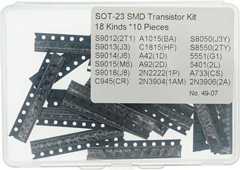 18Values10pcs=180PCS SOT-23 SMD Transistor Kit (S9012 S9013 S9014 S9015 S9018 A1015 C1815 A42 A92 2N2222 S8050 S8550 5551 5401 A733 C945 2N3904