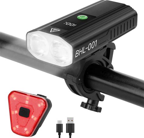 Bike Lights Set 1500LM USB Rechargeable Bicycle Headlight & Tail Light Waterproof 5 Lighting Modes Fits Bicycles For Road And Mountain